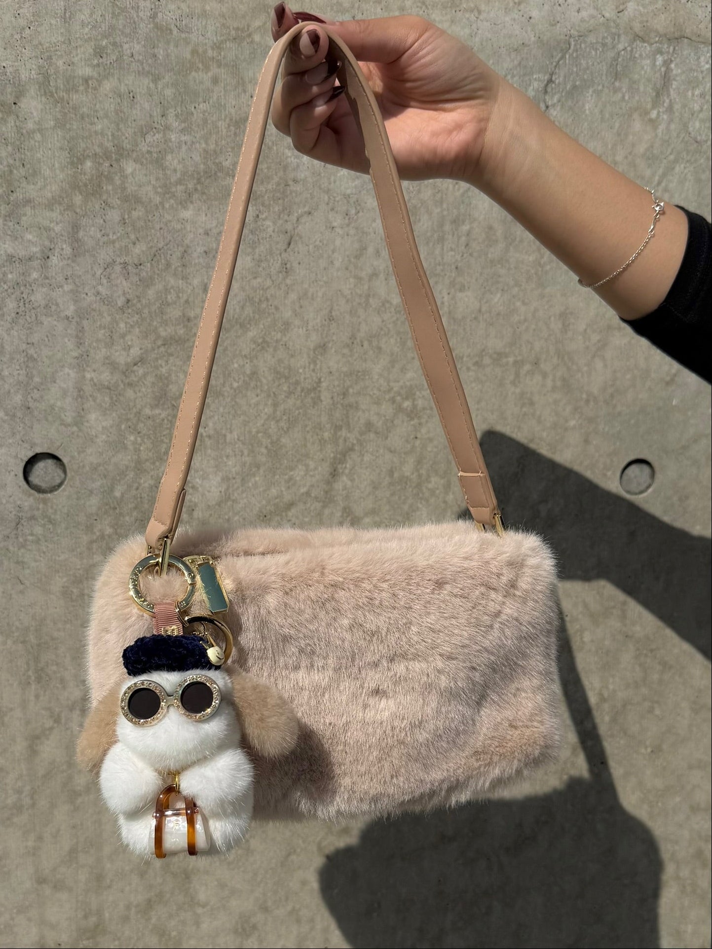 - ミニ バッグチャーム SS ホワイトブラウン